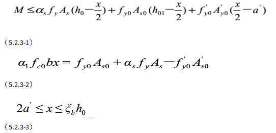 5.2.3当在受拉区加固矩形截面受弯构件时(图5.2.3),其正截面受弯承载力应按下列公式确定: