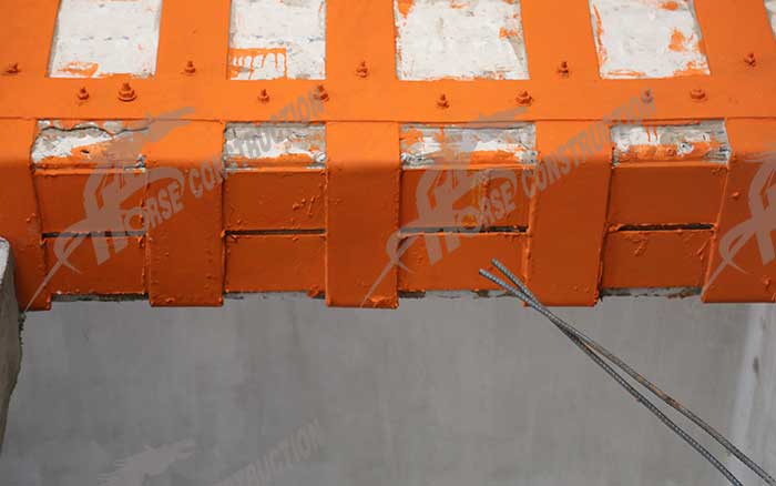 表面处理→底胶施工→找平施工→涂刷碳胶→粘贴碳布→二次滚涂→固化养护