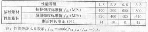 碳素钢及合金钢锚栓的钢材抗拉性能指标