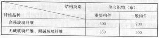 不同品种纤维复合材单位面积质量限值(g/m2)