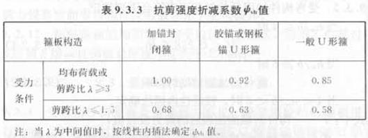 粘贴纤维复材加固受弯构件斜截面抗剪强度折减系数值