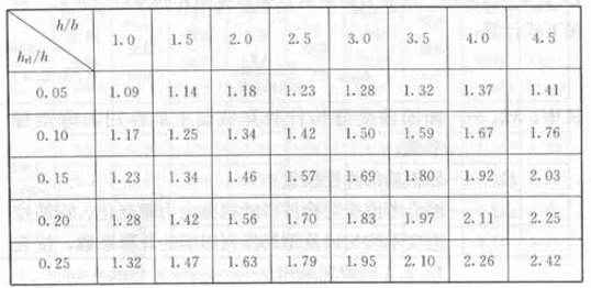 粘贴纤维复材加固受弯构件正截面修正系数值