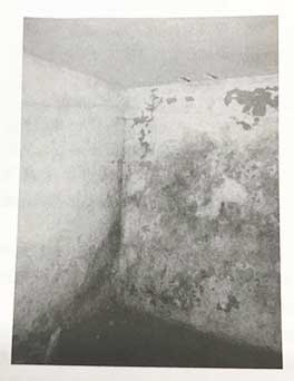3.Ⅲ区半地下室墙体渗水,导致建筑面层剥落,地下室顶板钢筋外露、锈蚀。