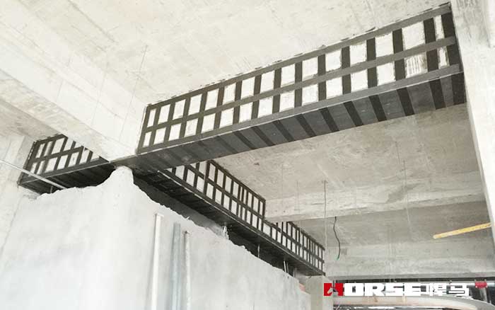 2.浸渍胶用量过少,对碳纤维布浸胶不充分,混凝土与浸渍胶和碳纤维布没有成整体。