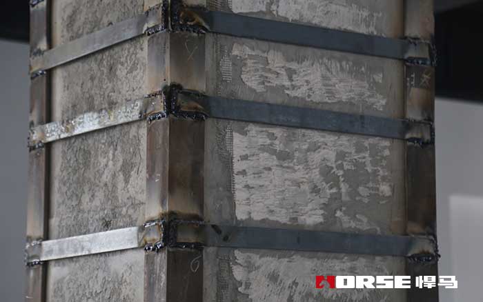 由外粘型钢组成的构架加固的柱子,型钢自身在正交的两个方向都有较大的刚度,承压稳定性好,除能相当大发挥钢材抗拉、抗压潜能,能承受很大的轴向荷载外,环形箍板还可以对柱产生横向约束力从而提高柱中混凝土的强度和延性,因而受到工程师们的热烈欢迎。