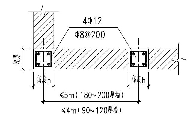 90~120厚墙,当2.0m>墙高3.0m时,应在墙高的中间部位设置一道压砖槛;当3.0m>墙高6m时,应在墙高的中间部位,设置一道圈梁;同时当墙长<4m而中间又无横墙或柱拉结时,应设置混凝土构造柱及角柱。
