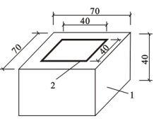 2 混凝土试块的尺寸应为70mm×70mm×40mm,其混凝土强度等级,对A级和B级胶粘剂均应为C40~C45;对A级和B级界面胶(剂),应分别为C40和C25。对I级和II级聚合物砂浆,其试块强度等级与界面胶(剂)的要求相同。试块浇注后应经28d标准养护;试块使用前,应以专用的机械切出深度约5mm的预切缝,缝宽约2mm,如图G.3.1–1所示。预切缝围成的方形平面,其净尺寸应为40mm×40mm,并应位于试块的中心。混凝土试块的粘贴面(方形平面)应作打毛处理。打毛深度应达骨料新面,且手感粗糙,无尖锐突起。试块打毛后应清理洁净,不得有松动的骨料和粉尘;