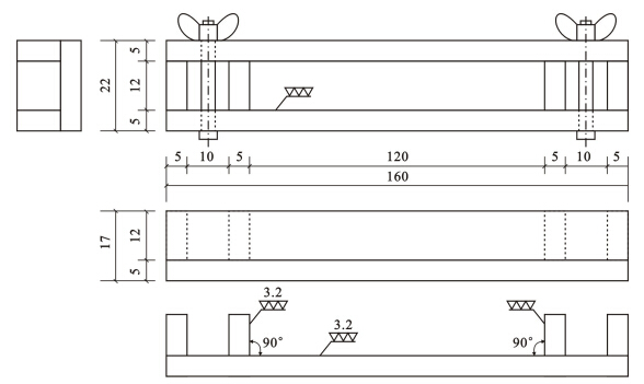 浇铸试件用的模具,应采用45号碳钢制作,模具形式、构造和尺寸如图P.2.1所示,模具内腔尺寸的允许偏差为±0.01mm;模具内腔的端面应垂直于模具长轴方向;模具内腔表面应平整、光滑,其光洁度应为。