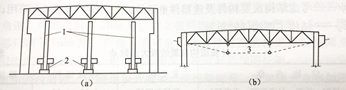 梁式结构,例如屋架,可以在屋架下弦节点下设临时支柱,或组成撑杆式结构,张紧其拉杆对屋架进行改变应力卸荷。此时,屋架应根据千斤顶或撑杆压力进行承载力验算,且应注意杆件内力是否变号或增大,如个别杆件、节点承载力不足时,卸荷前应对其进行加固。