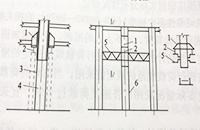1-牛腿;2-千斤顶;3-临时支柱;4-柱子被加固部分;5-永久性特制桁架;6-柱子被截取部分
