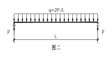 由图一和图二可以看出,在实际受力P作用下,支座反力为P/2;