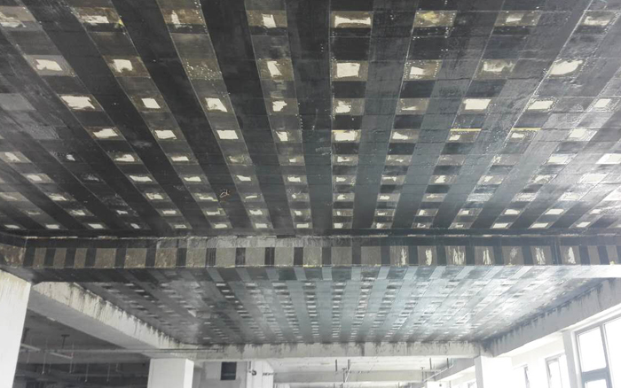 2.部分梁、板粘贴碳纤维布加固,增强承载力,延长建筑使用寿命。