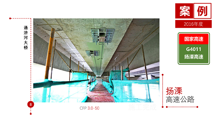 预应力碳纤维板加固系统是规范中规定可以在不卸荷、不阻断交通情况下进行有效加固的少数加固方法,同时所用材料具备高强纤维复合材料轻质、高强、耐老化的特点,加固后几乎不增加原结构的自重和体积,是非常理想的桥梁加固解决方案。
