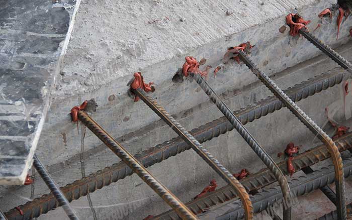 悍马建筑植筋胶用于钢筋和化学锚栓的后锚固,其加固原理是通过改性环氧胶粘剂与混凝土构件粘接,使钢筋或锚栓与构件共同受力提升构件承载能力。