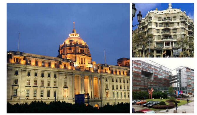 右上图是高迪1910年设计的米拉公寓,左图是设计于1925年的上海外滩12号汇丰银行大楼,右下图是设计于2003年的同济大学土木学院楼。你相信吗?在它们风格迥异的外表下,其实是一样的钢结构框架。