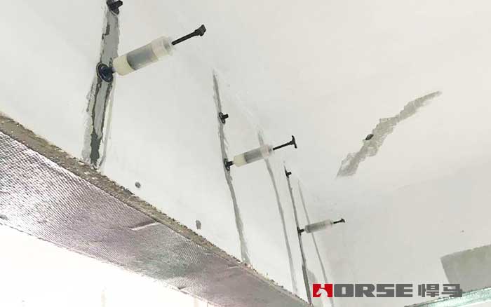 4.温度较高时,室外施工选择在早上或者晚上。如果需要在高温条件下进行施工,可以进行适当的降温工作。如果是较宽的裂缝,浆液中可掺入少许滑石粉或减少配方中的稀释剂用量。后期的检查工作也非常重要,需严格检查每一道工序,记录相关的详细情况。