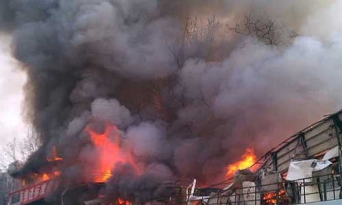 海航豪庭二期项目A05地块位于国兴大道北侧,发生火灾的3#楼位于地块东北侧,目前正在进行外脚手架拆除工作。经查明,火灾原因是该项目部施工人员在3#楼13层北侧用氧气烧割外脚手架连墙件作业,在烧割过程中由于未使用接火桶导致火星溅落至8层脚手板上,点燃脚手板上装垃圾的编织袋并引燃外脚手架的安全网。