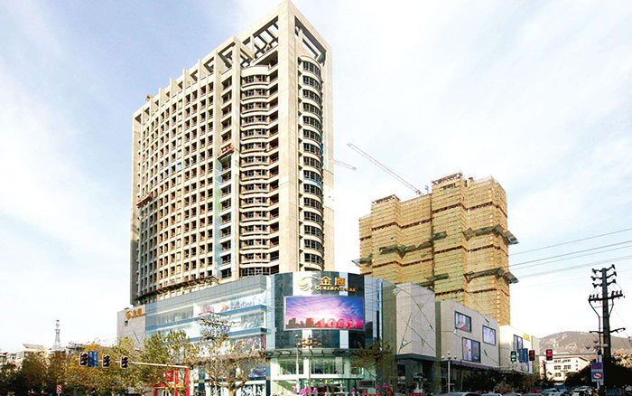 华松广场为高层框架结构,因使用功能变更,荷载增加,对楼板粘贴碳纤维布,梁粘钢、包钢。