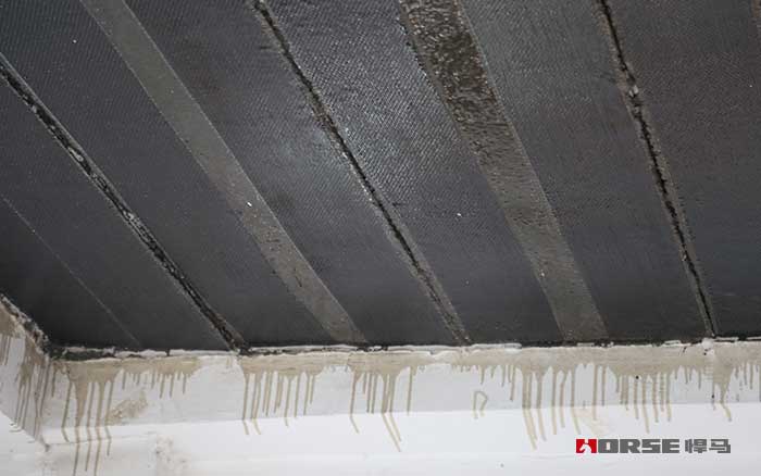 表面处理→底胶施工→找平施工→涂刷碳胶→粘贴碳布→二次滚涂→固化养护