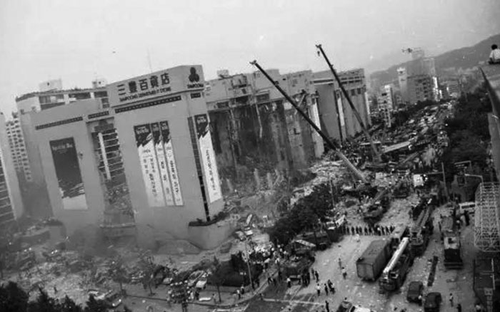 事故描述:在天崩地裂的20秒内,近1500人被压在42000吨瓦砾之下。这是1995年发生的三丰百货店倒塌灾难,也是韩国和平时期里伤亡最大的事故。