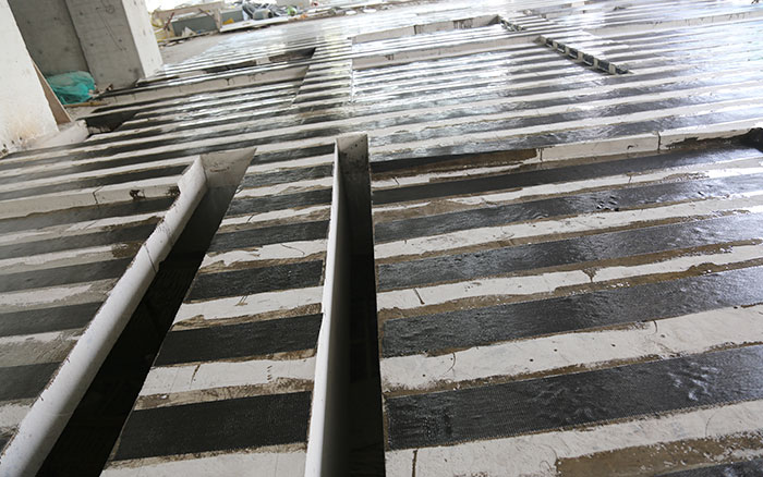 表面处理→底胶施工→找平施工→涂刷碳胶→粘贴碳布→二次滚涂→固化养护