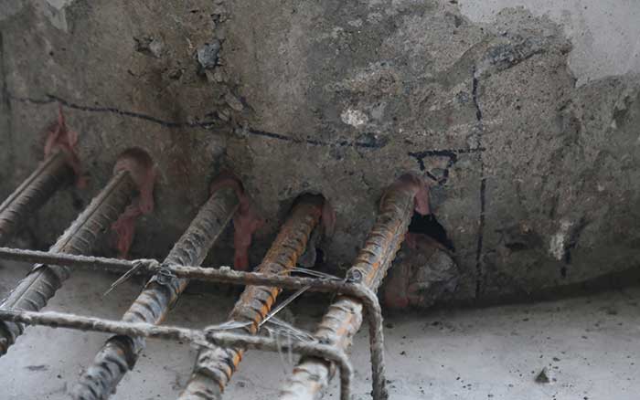 4.旋入钢筋或螺杆:将钢筋或螺杆旋入孔中,并上下抽动几次,以保证粘胶均匀。常温下(25℃),养护时间为24小时,期间不得触动杆体,养护后即可承载。