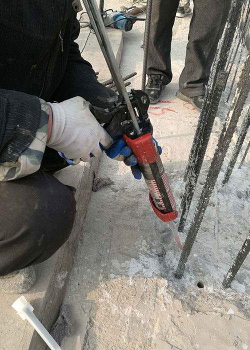 钻孔→清孔→注胶→旋入钢筋或螺杆→固化