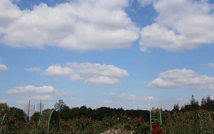 天蓝云白,花娇人丽