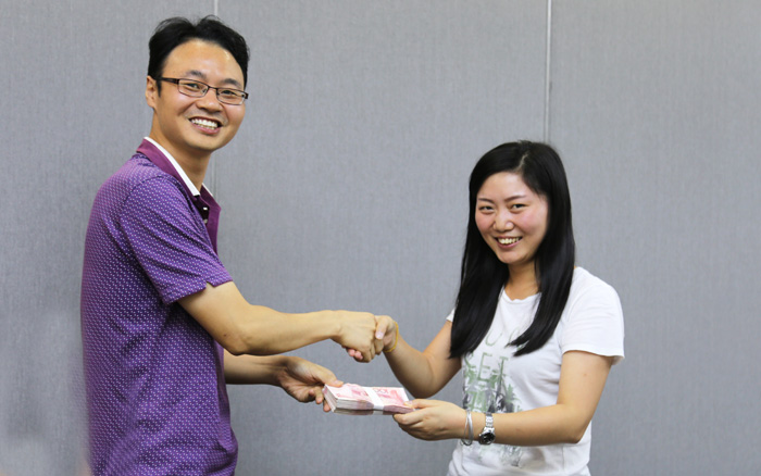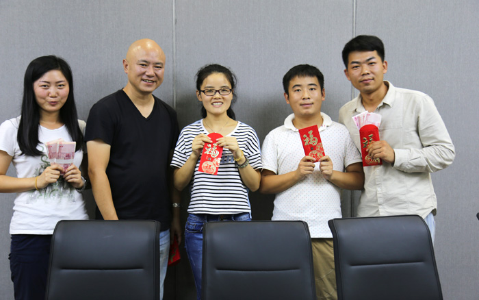 随后,公司对8月份表现优秀的员工进行表彰,并现场颁发现金奖励。
