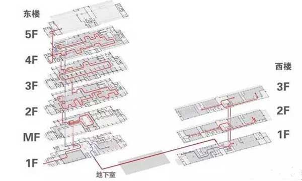 此次改建很大的一项举措就是东西楼之间建起了一个地下连廊。通过地下连廊把观众从东楼引导到西楼,免受风雨,展线也得以贯通。