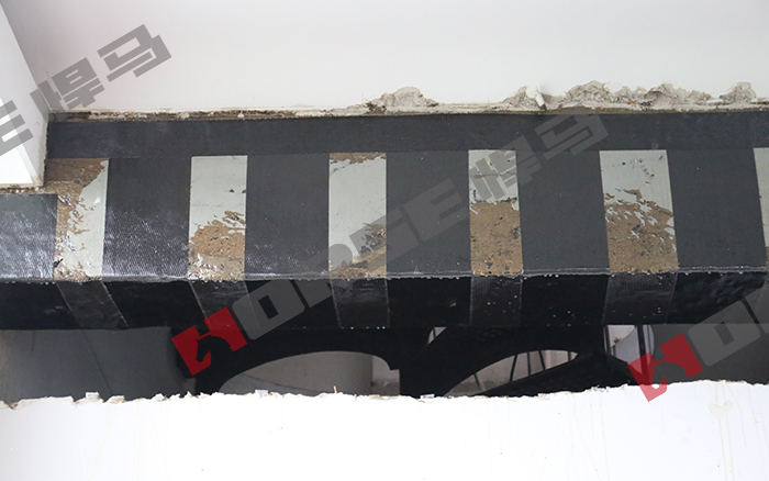 悍马碳纤维布质量比金属铝轻,但强度却高于钢铁,并且具有耐腐蚀、高模量的特性,在施工过程中不需要大型设备,施工周期短,因此可以作为加固工程的主要材料。