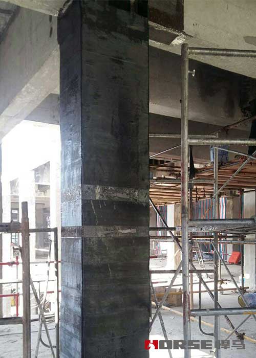 碳纤维加固结构柱是采用碳纤维浸渍胶将碳纤维幻想包裹结构柱,阻止结构柱横向破坏,从而保证柱子安全。