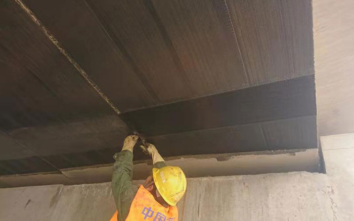 碳纤维加固处理中,应用高强度或是高弹性的连续碳纤维能够单向排列成束。这种情况也被称为碳纤维片材,将碳纤维片使用配制好的树脂片进行黏贴,主要贴在桥梁混凝土构件及需要加固的区域,通过树脂固化后,使其与原件形成一个新的受力复合体,共同承担受力。碳纤维加固后,能够适合多种结构类型,进行多处加固修补,如梁、板、柱、桥墩、筒体等结构,要求基层混凝土强度不低于C15即可。