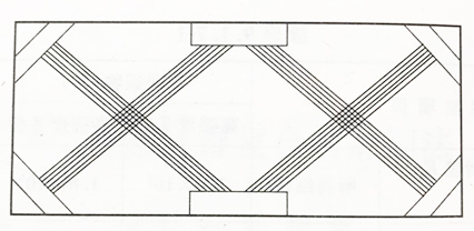 粘贴碳纤维复合材提高砌体墙平面内受剪承载力的加固方式,可根据工程实际情况选用:水平粘贴方式、交叉粘贴方式、平叉粘贴方式或双叉粘贴方式等。每一种方式的端部均应加贴竖向或横向压条。