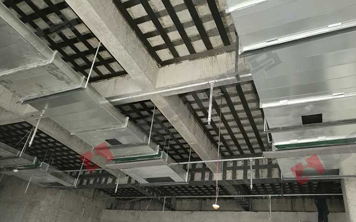 表面处理→底胶施工→找平施工→涂刷碳胶→粘贴碳布→二次滚涂→固化养护
