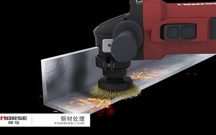 对型钢的内表面进行除锈和糙化处理,其目的在于保证型钢与原构件混凝土之间在注胶后具有可靠的粘结强度,以传递剪力。