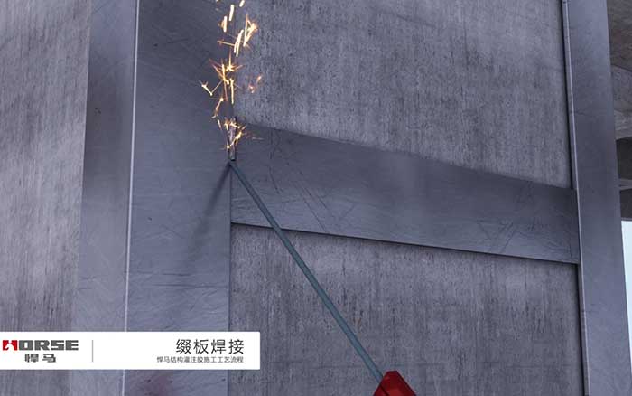 注意,当采用压力注胶法施工时,扁钢制作的缀板,应采用平焊方法与角钢保持连接牢固。平焊时,应使缀板底面与角钢内表面对齐,在保证平整状态下施焊。