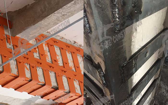 灌钢加固略有不同,灌钢加固又叫外粘型钢加固法,在使用过程中优先选用厚度不超过5mm的角钢将所需加固的混凝土柱或梁的四边进行包裹,用来大幅度提高混凝土柱或梁的截面承载力和抗震能力。