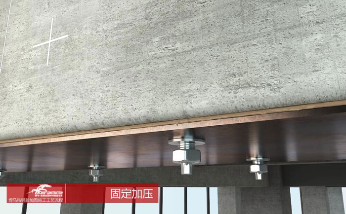3.钢板粘贴时表面应平整,段差过渡应平滑,不得有折角。钢板粘贴后应均匀布点加压固定。其加压顺序应从钢板的一端向另一端逐点加压,或由钢板中间向两端逐点加压;不得由钢板两端向中间加压。