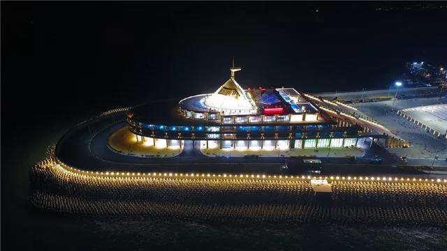 港珠澳大桥夜景照明分功能性和装饰照明两部分。无人机镜头下,连绵数十公里的港珠澳大桥在灯光映照下犹如一条彩练,蜿蜒绵亘伸向远方,将茫茫大海划成两半。