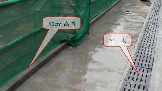 1.2各种构件、机具等的存放场地,以及现场钢木加工和预制构件的生产场地,应周边墊高,严禁积水。