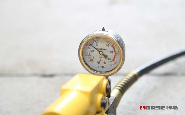 千斤顶是用于预应力碳板张拉的专用器具,千斤顶漏油或超出行程吨位等现象将会影响施工进行,因此,使用前应严格检查千斤顶的参数,切忌超压超载使用。张拉前检查油泵油量,并使千斤顶空行程运行几次以排空千斤顶及油管内的空气。