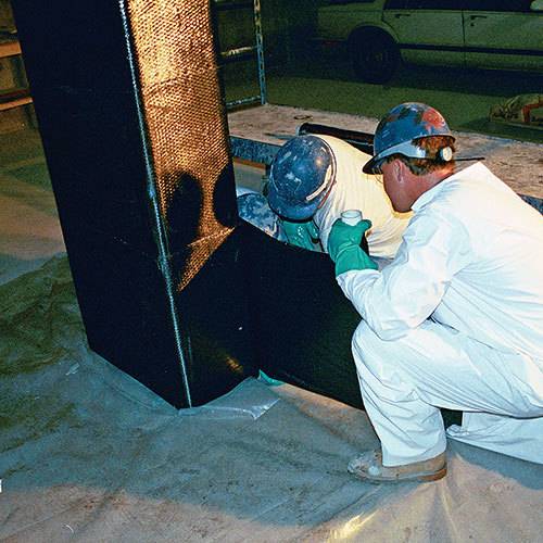 工程师们用碳纤维和尼龙、聚酯、乙烯基质等化纤材质的线缆缴合在一起,捆绑在建筑物的承重结构上,比如桥梁的桥墩,建筑物的承重墙,从而用较低的成本实现对非抗震结构建筑物的抗震加固改造。这种方式叫做 FRP——Fiber-Reinforced Plastic wrap。研究显示,经过这种方式进行多次加固的建筑物抗震能力能够获得 20-40% 的提升。