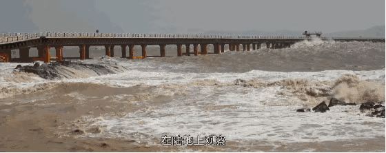 承台混凝土作业现场,仅3米高的浪涌,大海就像开了锅