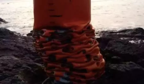 镇海乾坤锁被大桥人称之为超级哑铃。俯瞰的图中可以看到,22根桩被乾坤锁牢牢的锁在海中紧紧的抱成团,共同形成定海神兵。