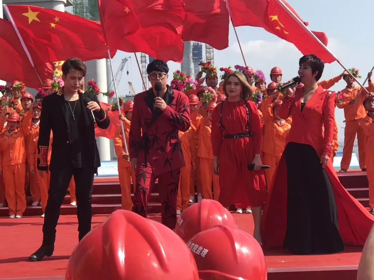 中央电视台在福平铁路平潭海峡公铁大桥施工现场录制国庆特别节目《我和我的祖国》,我和我的祖国,在这里录制意味深长,大桥人籍此可以感到光荣与骄傲!