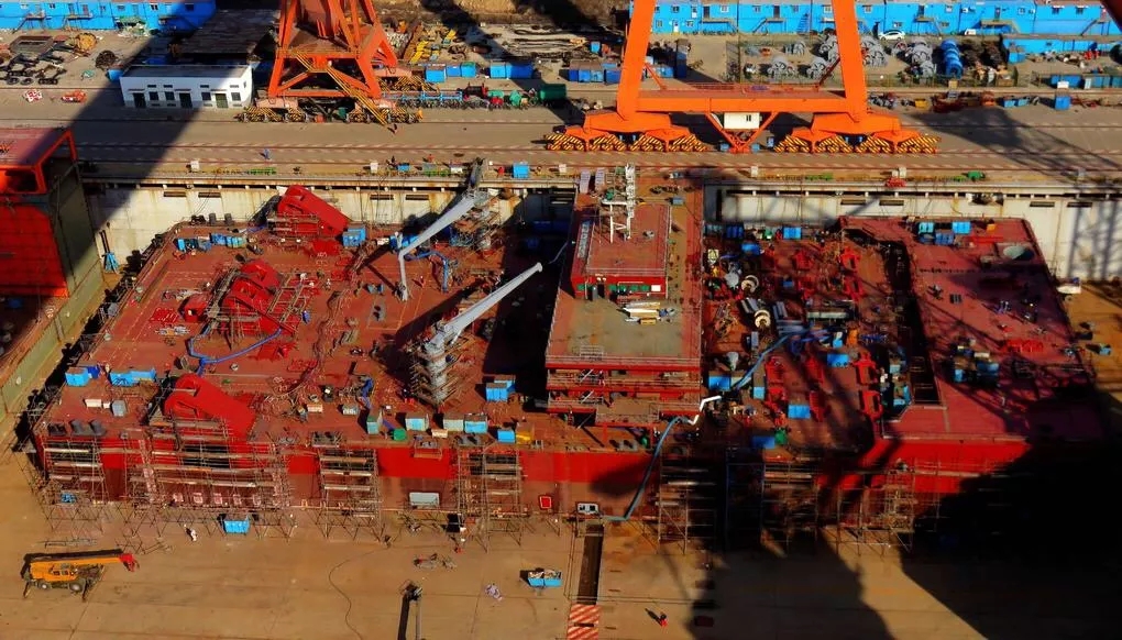 能起重3600吨的海鸥号的建设现场,规模宏大的像不像建一艘小型航空母舰。像这样为平潭海峡大桥建的巨型起重船,3600吨、2000吨、1000吨、700吨不等的大大小小有7艘。
