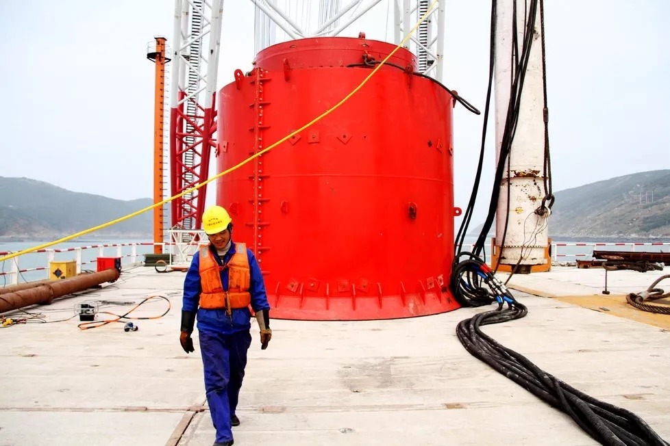 平潭海峡,风大、浪高、流急,一年2.5米以上涌浪天数占45%,最大浪高9.69米,最大高差7.09米。那么3米高的浪涌,放之于广阔无垠的大海,也许看起来仍是波平浪静,但是放在局部的施工现场呢?也许像一大锅烧开的沸腾的海水。