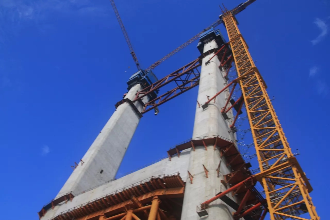 要在平潭海峡40多米的海水中,架起宽532米,下可通行万吨邮轮,上可跑六车道高速及双线动车的双层公铁大桥,没有擎天之柱不可以担当。