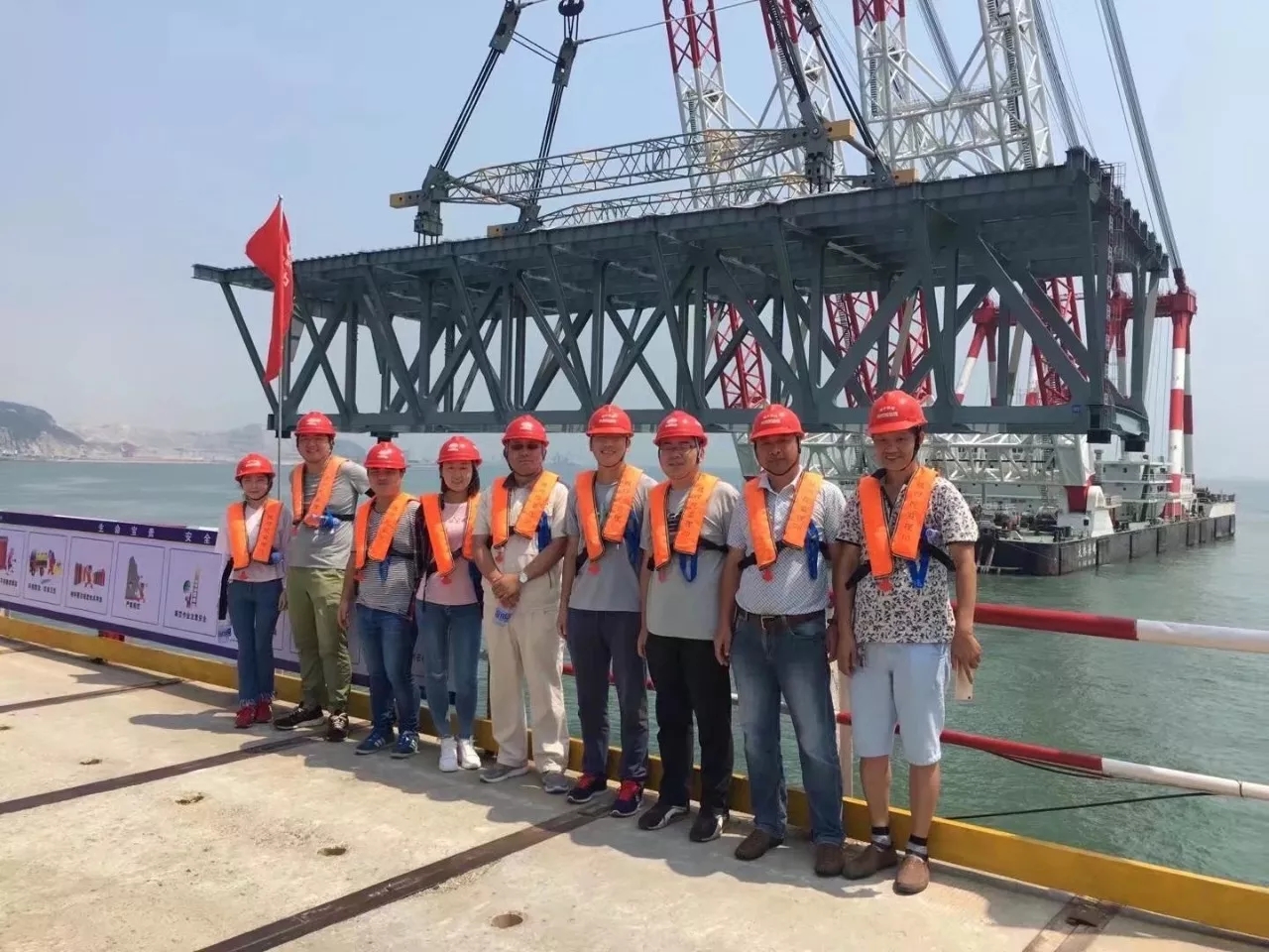 建设者与身后正在吊装的首榀钢桁梁合影,这是历史的时刻,他们为此而感到骄傲!你可知道努力所以骄傲的感觉吗?